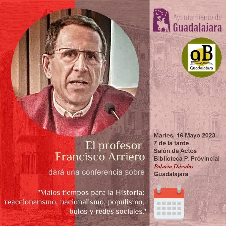 El martes 16 de mayo de 2023 a las 19:00 horas, el profesor de Auladade Francisco Arriero, impartirá la conferencia “Malos tiempos para la Historia: reaccionarismo, nacionalismo, populismo, bulos y redes sociales”.